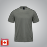 160 GSM - 4.7oz/yd2 - 8 oz./lin. yd. Solids - 100% certified organic cotton jersey, Heathers - 80% certified organic cotton, 20% polyester jersey. 28 single combed compacted yarn. Rib knit neckline with spandex for shape retention. Jersey knit back neck tape. Tear-away label. Side seamed.